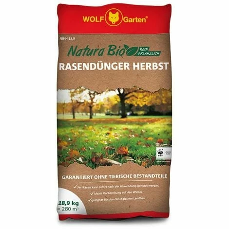 WOLF GARTEN NATURA Bio Herbst Rasendünger NR-H 18.9 | 18.9kg |für 280m² | Hersteller-Nr.: 3852630 | EAN: 4008423873573 | • Reichweite: ca. für 280 m²