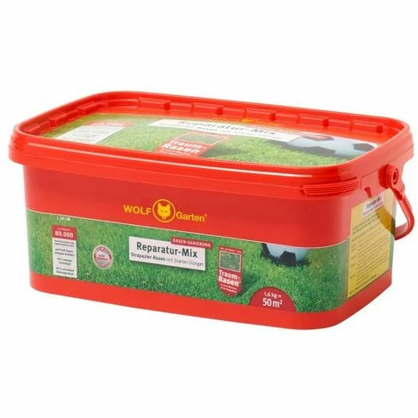 Nach einem heißen Sommer, einem anstrengenden Fußballmatch mit den Kindern oder schlichtweg durch eine unzureichende Nährstoffzufuhr kommt es immer wieder zu kahlen Stellen inmitten des Grüns. Damit die Rasensaat optimal keimt und schnell wächst, benötigt sie direkt bei der Aussaat eine erste Düngung. Mit dieser Mischung lässt sich ein Arbeitsschritt sparen, da der Dünger direkt enthalten ist. Mit der exklusiven WOLF-Garten-Keimgarantie und den perfekt aufeinander abgestimmten Komponenten ist der neu angelegte Rasen schon nach sechs Wochen dicht (80.000 Triebe / m²) und strapazierfähig. Auch dauerhaft ist das Grün selbst bei höchsten Beanspruchungen extrem belastbar und robust. Der Starterdünger beschleunigt das Keimen der Samen dabei um bis zu 30% und sorgt für eine sichere Ansaat. Gleichzeitig ist die Unkrautbildung durch die Auswahl der Grasarten merklich reduziert. Die Verpackungseinheit ist für 50 m² ausgelegt.