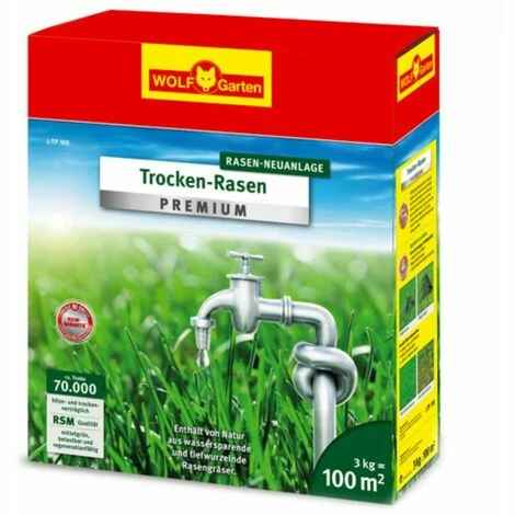 WOLF GARTEN Trockenrasen Rasen Neuanlage L-TP 100 | 3kg | für 100 m² | Hersteller-Nr.: 3824640 | EAN: 4008423865936 | • Packungsgröße für 100 m²